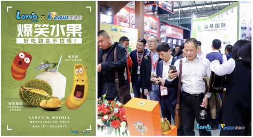 在2019年11月13日上海新国际博览中心举办的FHC (Food & Hotel China)2019第二十三届上海国际食品饮料及餐饮设备展览会现场,爆笑虫子与进口鲜果代表麦迪尔正式达成战略合作,将于今年的圣诞新年黄金档,隆重推出爆笑榴莲x爆笑椰超人气网红美味CP组合!这将是IP赋能品牌年轻化/社交化/趣味化的又一经典之作,让你“好吃到合不拢嘴,开心到停不下来!”